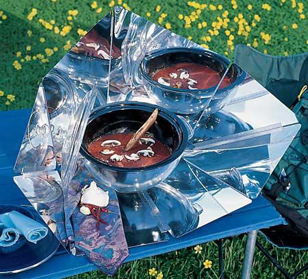 This low-cost, high-performance solar oven can produce cooking temperatures within an hour in full sun and be used for up to six hours; perfect for baked goods or slow-cooking stews. The Hot Pot Simple Solar Cooker includes a 5.3 quart enameled steel pot. The aluminum reflector sides fold down for easy storage. The oven can reach temperatures up to 350-400 degrees. Respected institutions such as Florida Solar Energy Center and Energy Laboratories, Inc. tested and refined the product's design over a six-year period. Sales of the Hot Pot help subsidize the distribution of this device in developing countries to reduce deforestation and respiratory disease caused by traditional cooking methods. USA and Mexico.Price: $99.00